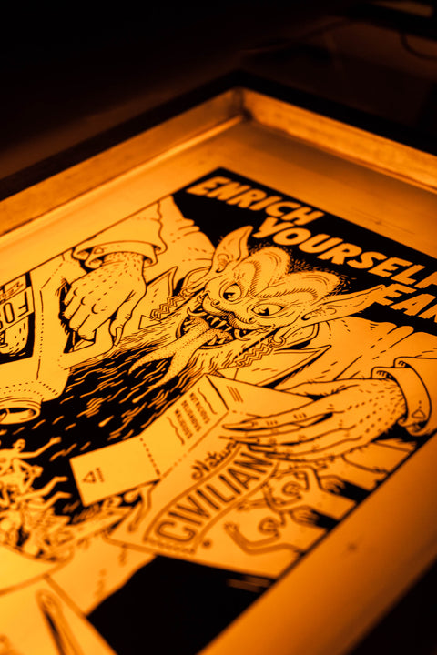 We love to work with artists of all kinds - If you want to bring your piece in the hands of the people, we will do our utmost to bring your vision to life using our handcrafting skills in the old school technique of serigraphy.